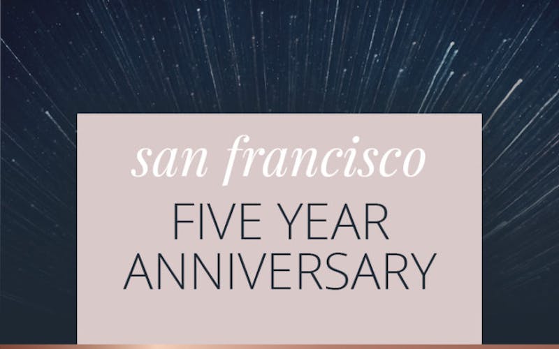 We've been at our Hayes Valley location for five years! We’re proud of all we have accomplished and want to celebrate that. But mostly, as we know we could not have done it without you, we’re having a party to thank you for your loyalty and for helping us beco...