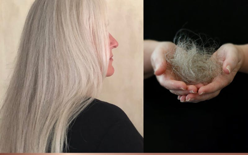 I am lucky to have great hair. But lately, each time I put my fingers around my pony tail, there’s less and less overall thickness. And I can see far more hair in my brushes and in the shower drain. I believe I’ve lost over half my hair in the last two years.